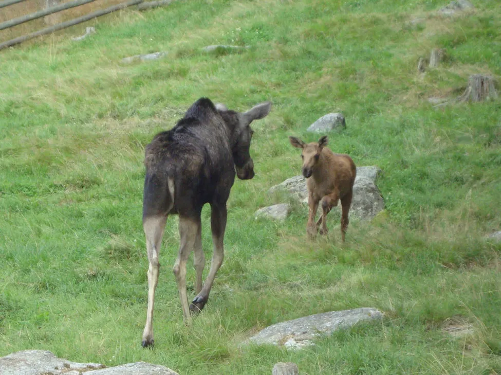 Älgko med kalv