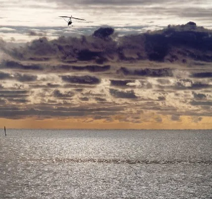 Ultralätt Flygplan från Maglarp Trelleborg flyger utöver havet vid en mörk åskladdad himmel !