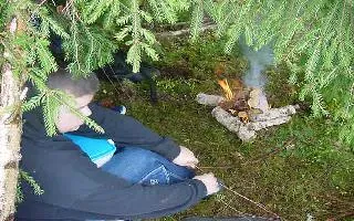 Jag och några elever i studierumme 4 på Centralskolan hade som uppdrag att bygga en hydda som det skulle gå att övernatta i.Detta blev perfekt!(Fredrik på bilden som njuter av varm choklad)