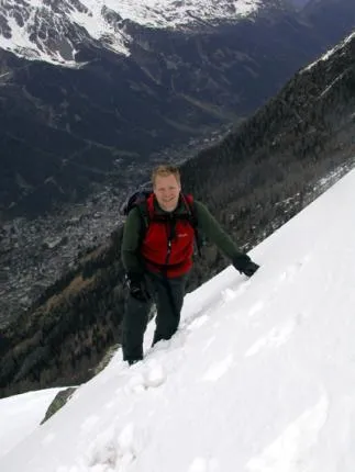 Kul men mycket brant, Chamonix i bakgrunden, lite mörk bild..