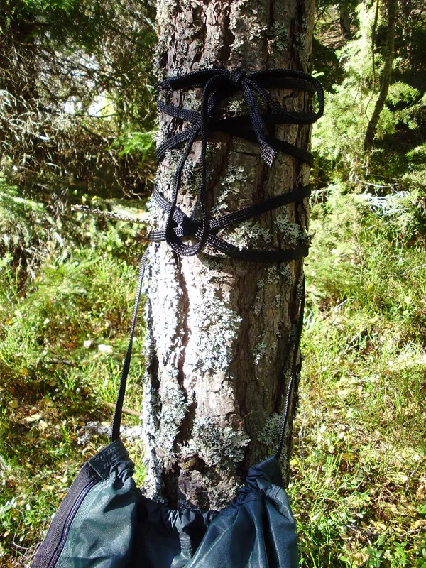 Bra lösning - detta att göra flera varv runt trädet då det avlastar knopen ju fler varv man gör.