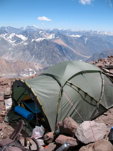 Läger 2, 4800 meter över havet. Här delade vi på ett tält, Hilleberg Saivo.