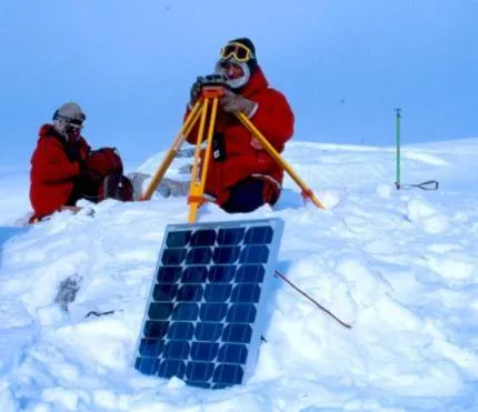 Med hjälp av GPS kan glaciärers flödeshastigheter bestämmas. Här upprättas en basstation på fast mark