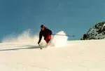 Jens på väg ner till bilen efter en fin topptursdag i Gränsen '98, trycker till den sista lössnösvängen för dagen. 50 fallhöjdsmeter senare blev det slasksnö.