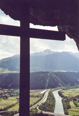 foto inifrån grottan med underbar vy utmed inntal! i grottan finns ett jesukors och en staty av den historiske martin.
