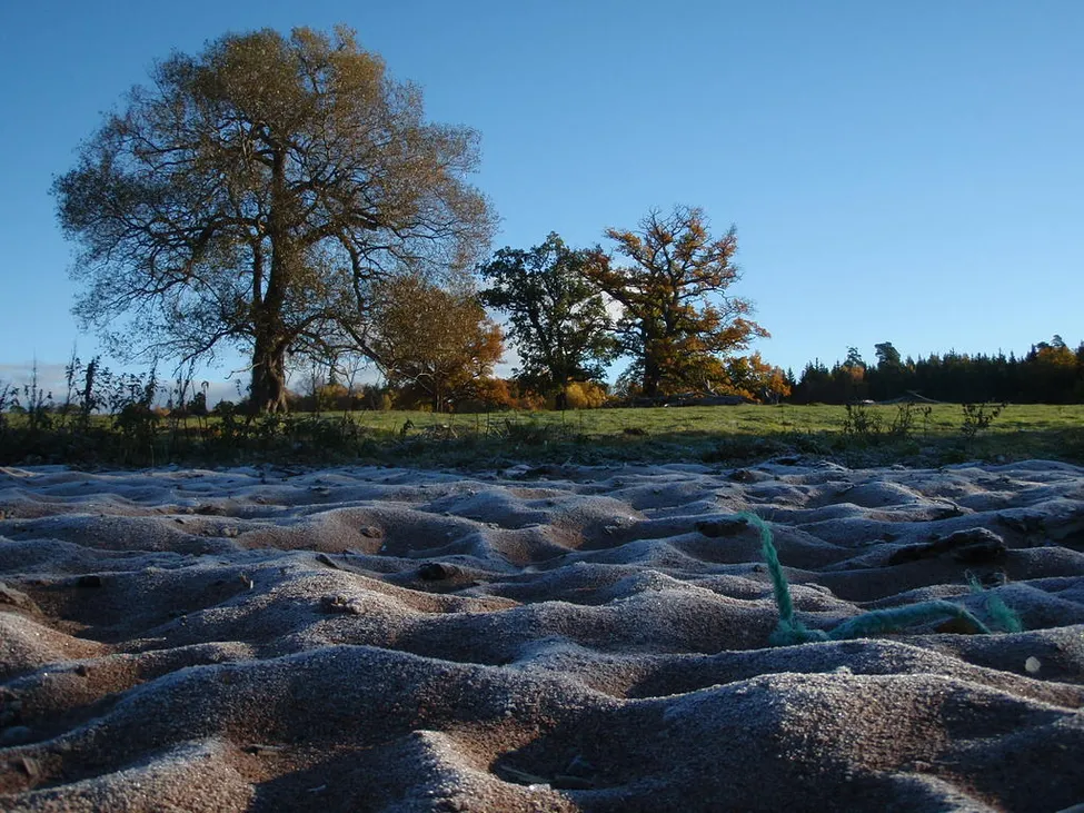Rimfrost i sanden.