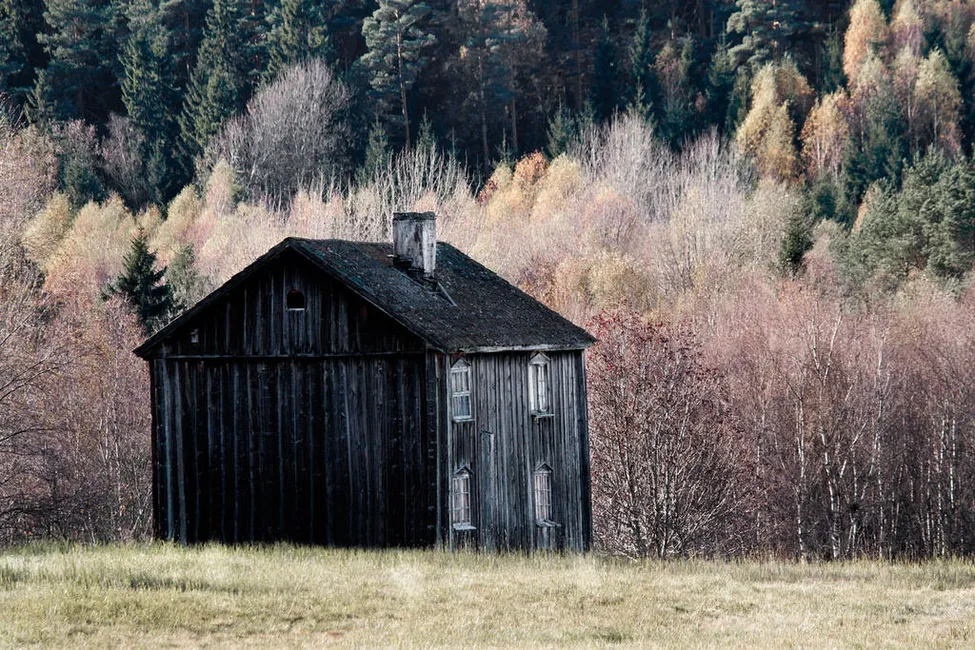 Fint foto ! Hajade till när jag såg det för detta hus påminner om en gammal lada i vår närhet men den finns det ingen skorsten på.Växtligheten runt omkring påminner också.