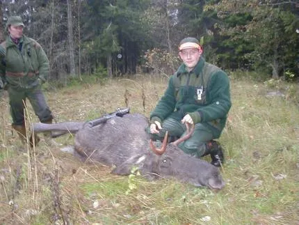 Älgen nedlagt med en 11,7 grams Oryx på ca 130m. Vapnet är en Sako 75 Synthetic Stainless i cal 308W. på vapnet är det en finsk ljuddämpare monterad.