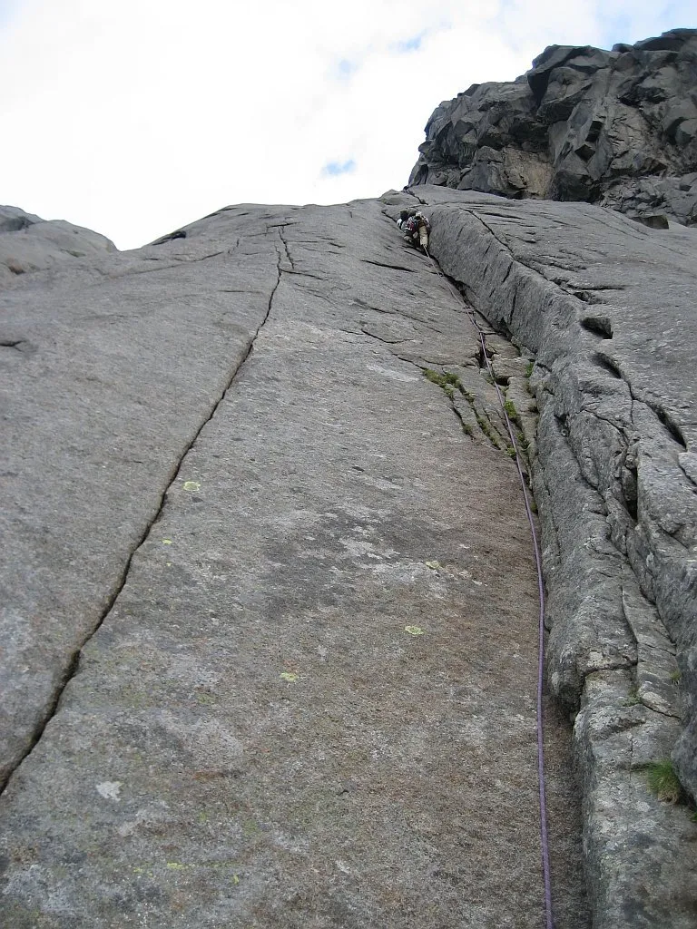 Jag på andra replängden på den absolut finaste leden i de lättare graderna som jag klättrat. Alla som kan leda 5- / 5 flera replängdersleder borde göra denna.