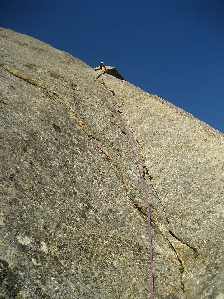Vi behövde aldrig aida eller hänga på någon säkring utom stand, men vetskapen av att man kan göra det lätt vid behov samt avsaknaden av någon som helst tidspress gjorde att detta kändes som en väldigt snäll led. Ett måste för de som kan leda grad 6 multipitch leder.