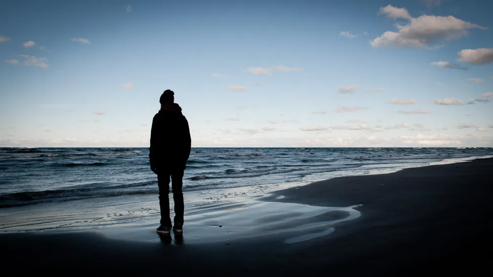 Min son Erik spanar ut över havet från Norder Hau#gotland