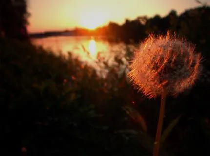 Ville spegla en maskros sista dag(?) i solnedgång.