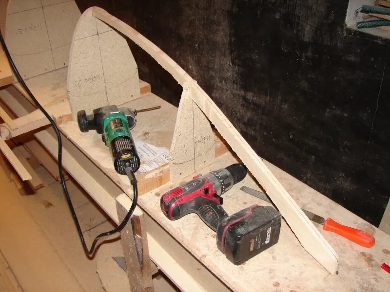 Förens innerstäv monteras. Jag låter den gå till spant 2.
