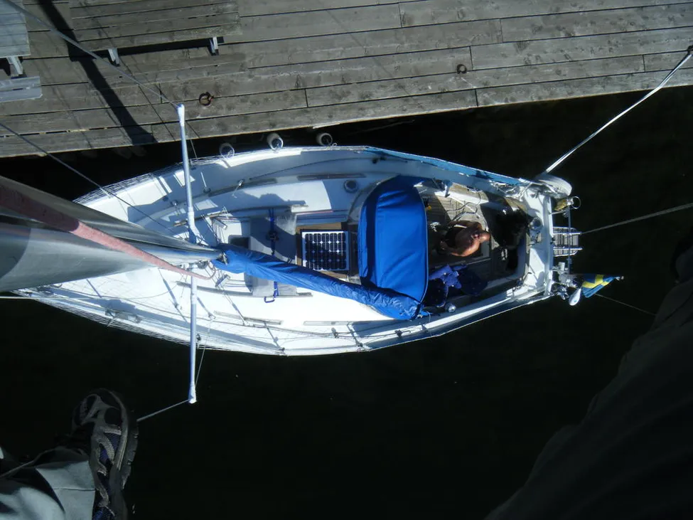 Lite fix med riggen efter en seglin från Huddik till Ulvöarna på 1 dag i 19-22sekm + åskbyar på kvällen .