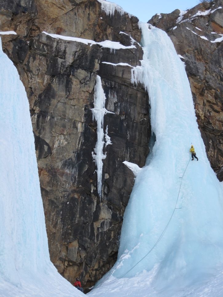 Åh vad läckert! Nästan obegränsat med klättring och säkringsmöjlighet, dessutom blöt is! ;-)