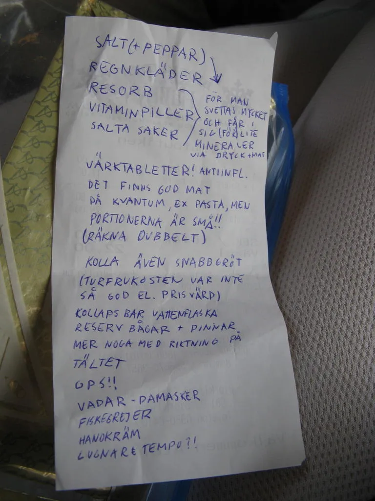 Jag tippar på en "uppföljnings- och utvärderingslista" efter en vandring:-)