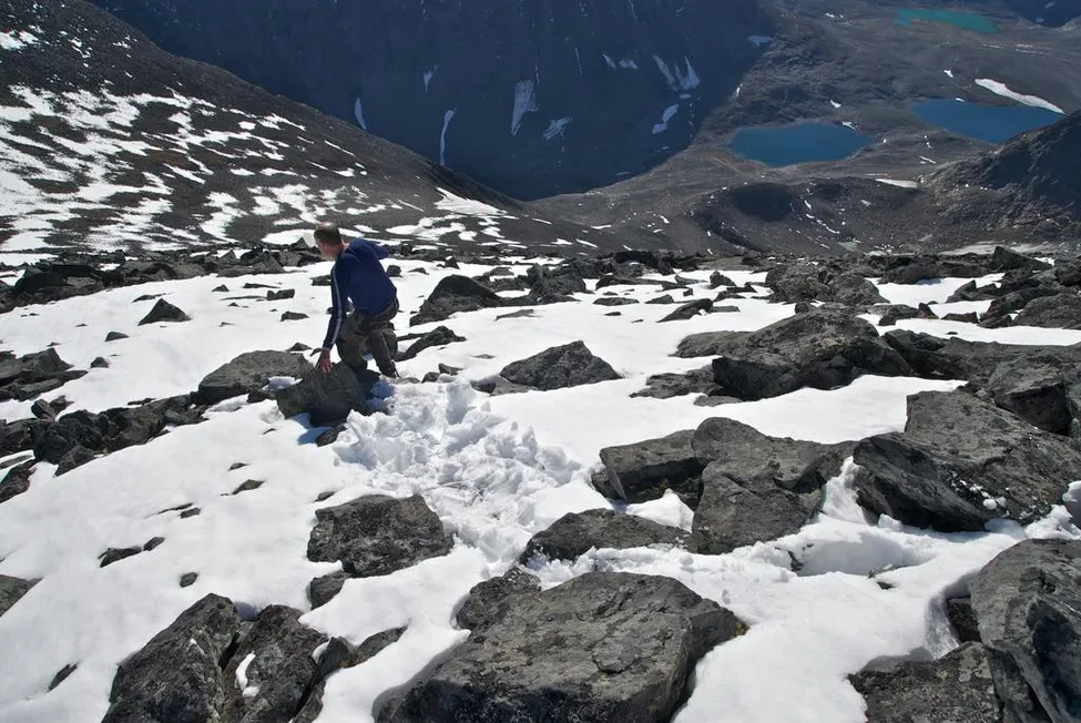 Eftersom att vi inte kunde använda snöfältet en bit längre ner blev det en ganska mödosam nedstigning i besvärlig blockterräng.
