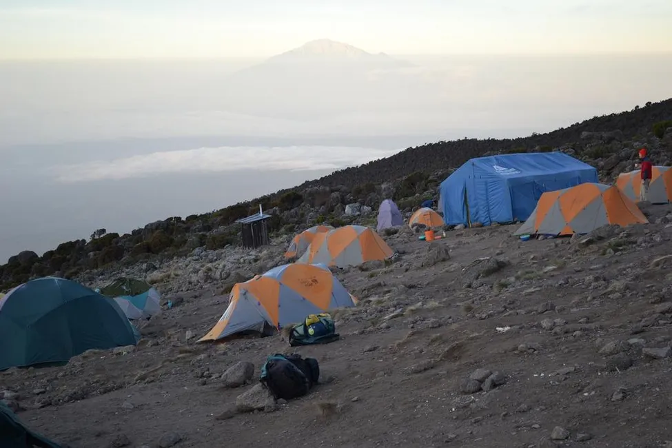 Karanga camp 4000möh, Alpine Ascents lunchtält och Mt Meru