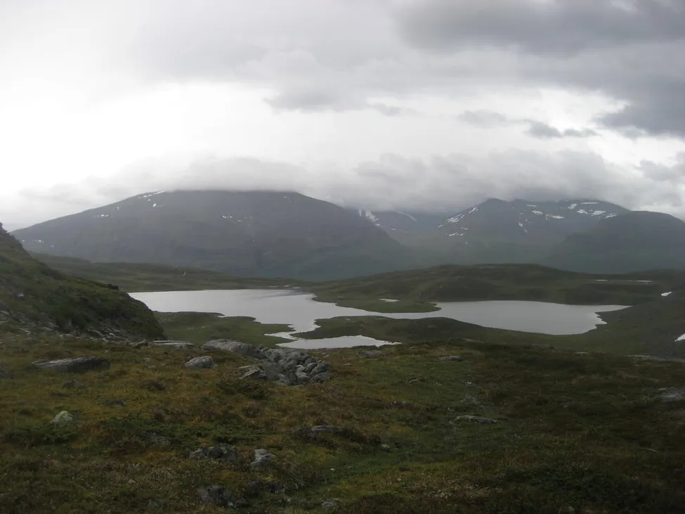 Abiskojaurestugorna "precis" till vänster om bilden nere i dalen.