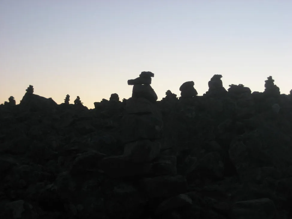 Vi byggde ett röse, som jag senare ser är väldigt likt en känga :)