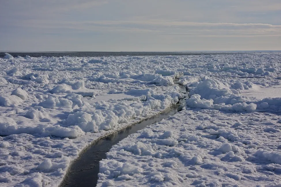 Ca 2 km ut från Väddö. Öppet hav en bit innan isen fortsätter.