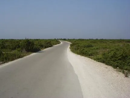 Olidligt varmt, torrt och dammigt på vägen längs Fårös nordkust.