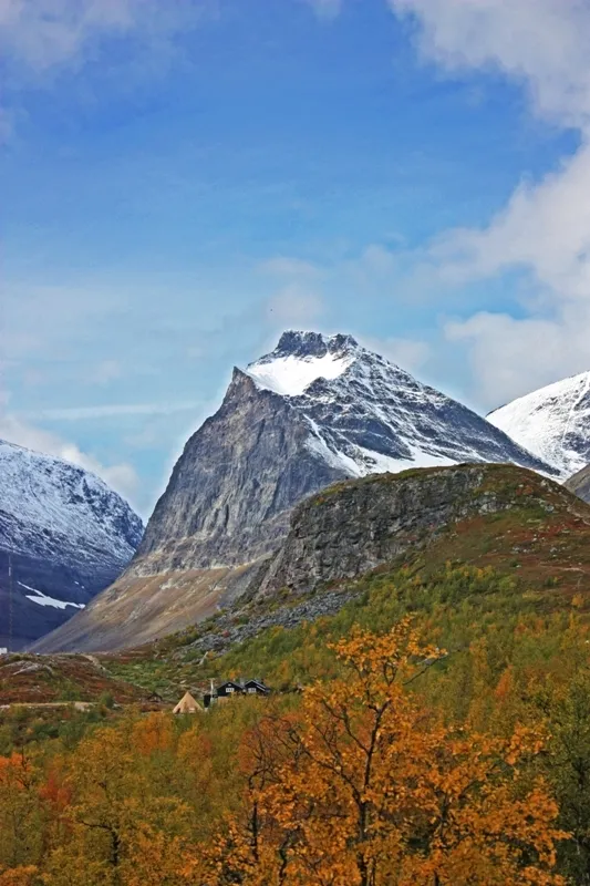 Kebnekaise fjällstation med Tolpagorni i bakgrunden.
