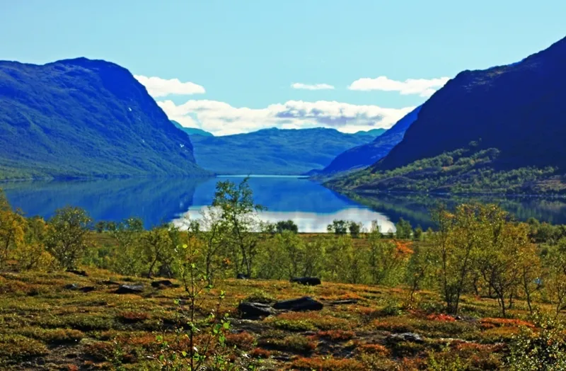Vy från Kaitumjaure stugorna.
