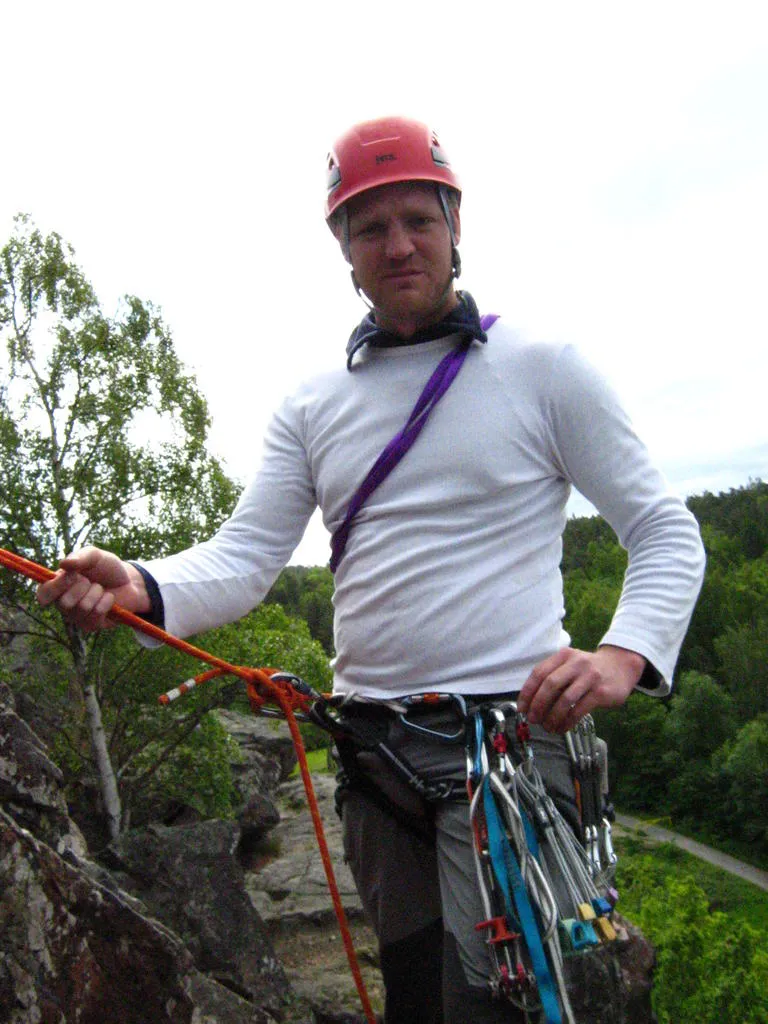 Luft under fötterna. Standplats på en hylla ca 25 m. Häggsta Stockholm