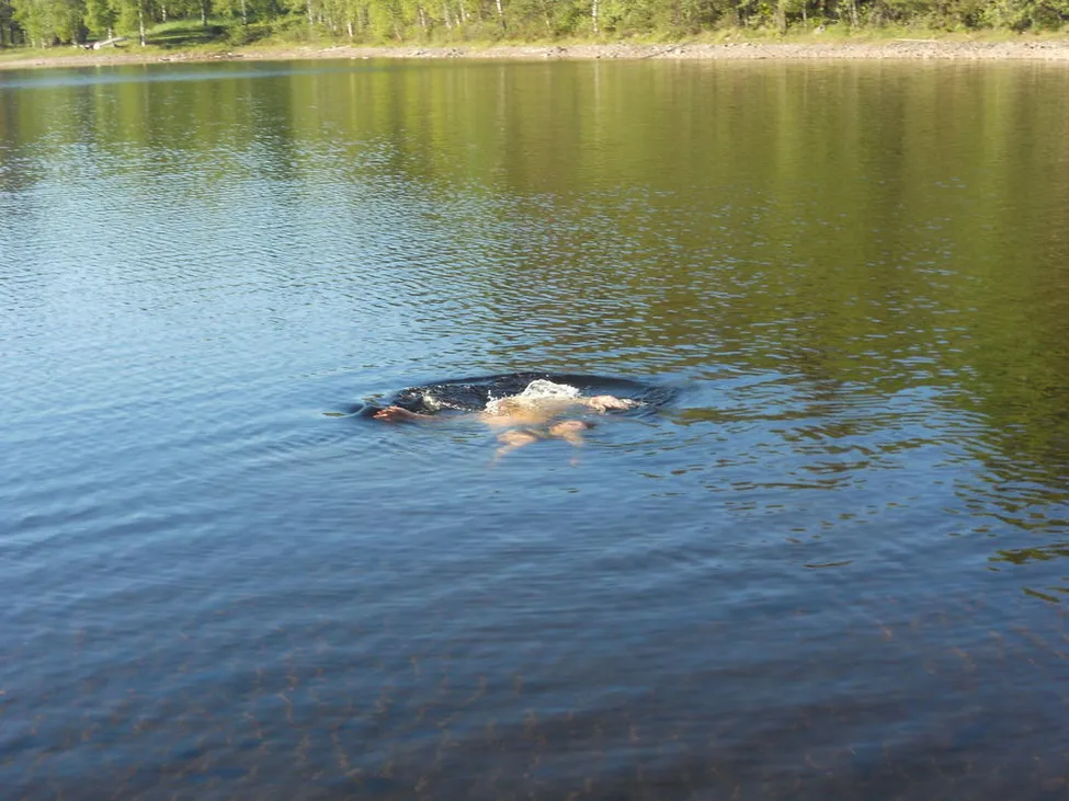 Det var så varmt så vi tog oss ett dopp i Stora Gla