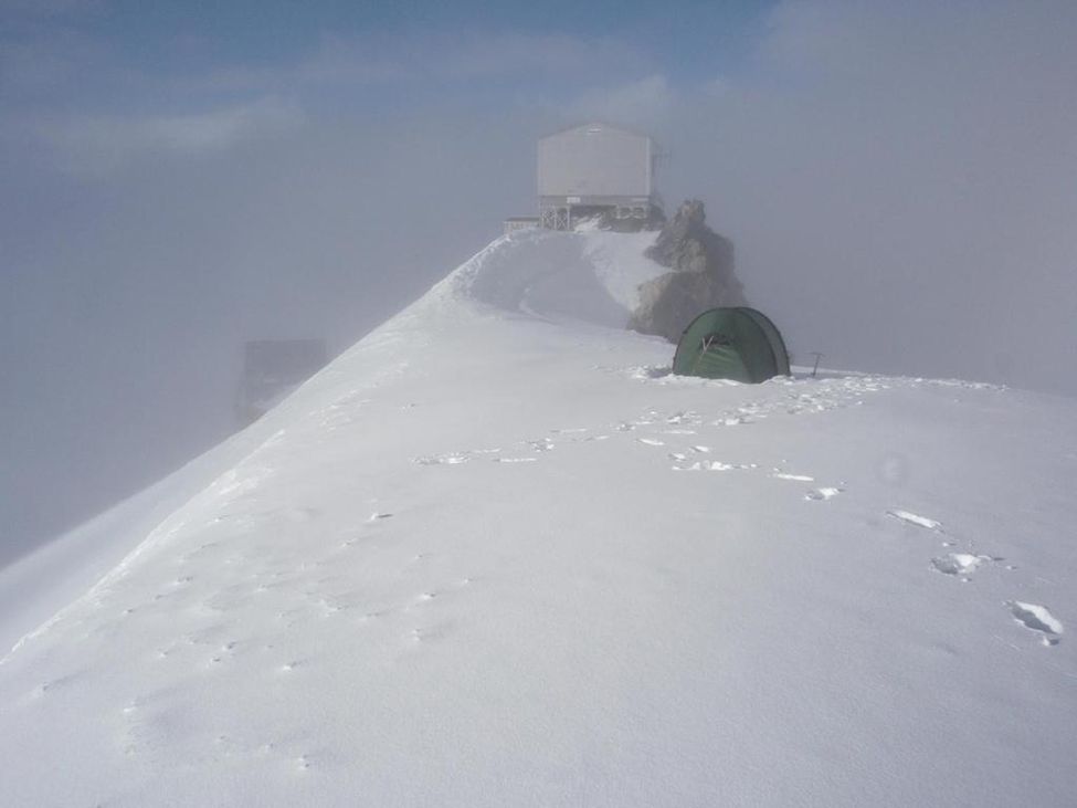 Vallot hut, ungefär halvägs mellan gouter och toppen, stugan är endast för nödlägen, och tro mig du sover inte där inne om du inte måste, lukten av spya och skit var.... påträngande.