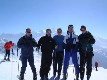 Vi står på bergs toppen.Bakom oss är Europas högsta berg