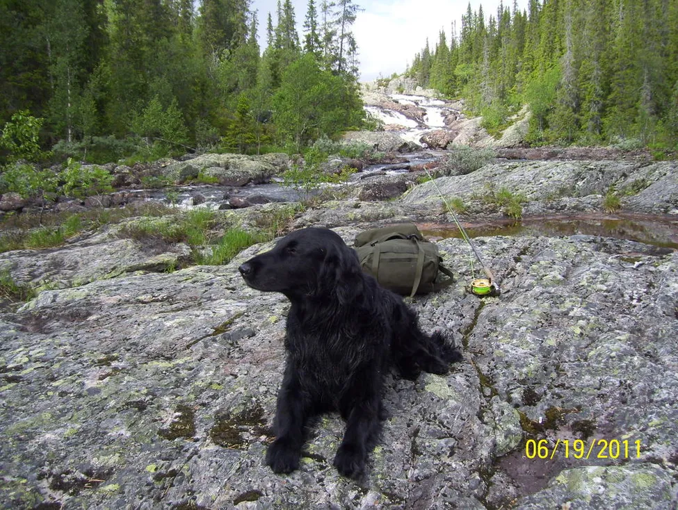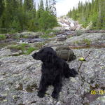 Ludde och jag tar en paus på väg uppför spisån.