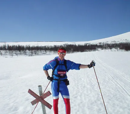 En trevlig weekend i Bruksvallarna där Bengt har stuga. Här ser du mig under en vilopaus på väg upp mot Kariknallens topp i vårvärmen. Det var fortfarande en hel del snö...