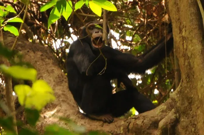 Jag kokade kaffe i en skog i södra Guinea och där fick jag oväntat besök. Två schimpanser stannade till och tittade på mig i nästan 30 min innan de fortsatte vidare