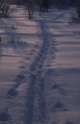 Först i spåret en tidig förmiddag. Under en dryg mil, såg jag aldrig skymten av skidspetsarna. Men vad gjorde det? Pudersnön var fjäderlätt.