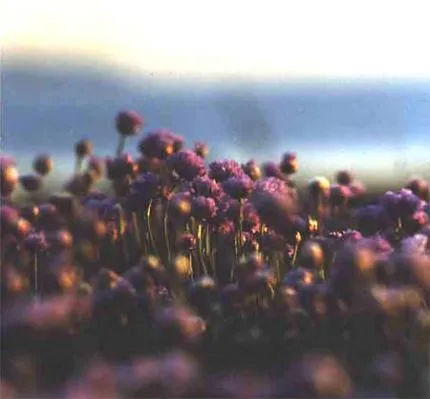 Fin kväll på en blomsteräng vid havet