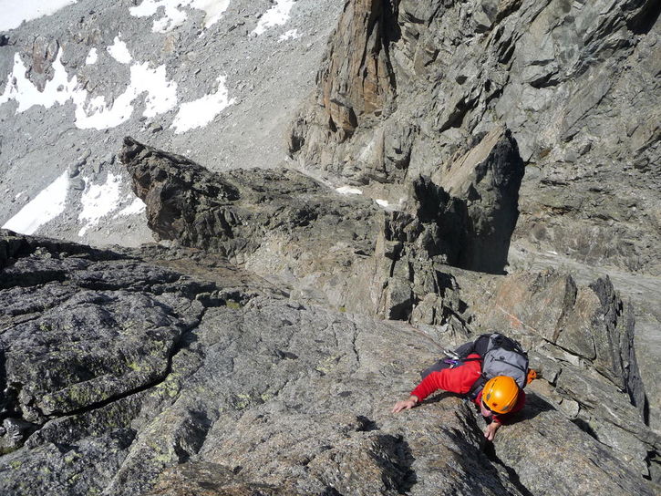 Markus leder på sydvästsidan av aiguille d'Orny.