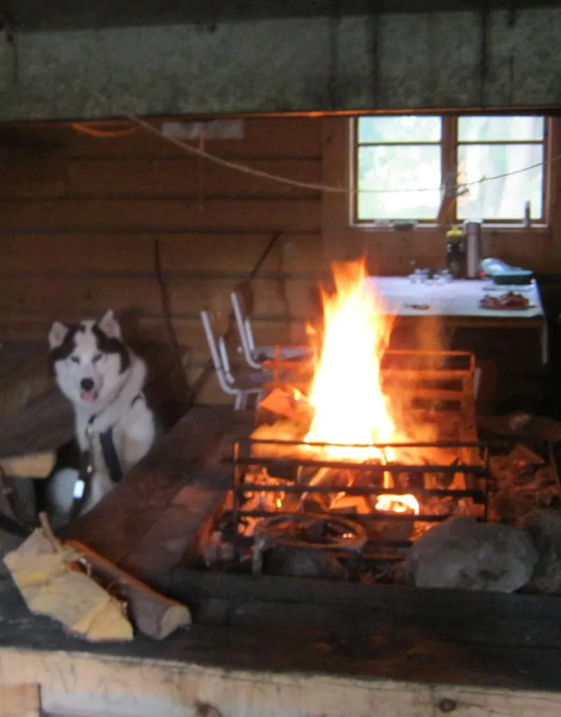 Tände en eld så fort vi kom dit för att steka potatis och fläsk.