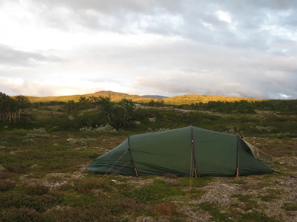 Första nattens tältplats mellan Kroktjärnarna och Vålåstugorna
