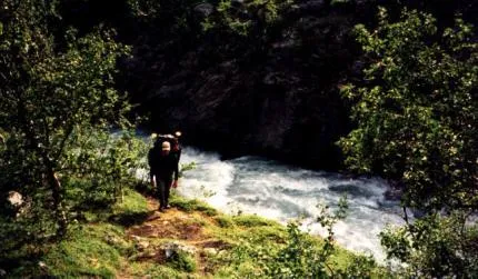 Mikael Andersson på väg till Kebnekaise från Nikka. Här befinner han sig 200m från Tarfalabron