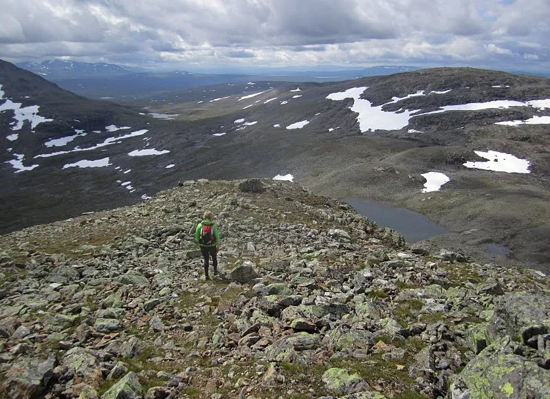Nedstigning från Lillsnasen. Denna dag besöktes topparna Storsnasen, Lillsnasen och Tväråklumpen innan färden gick vidare mot Blåhammaren.