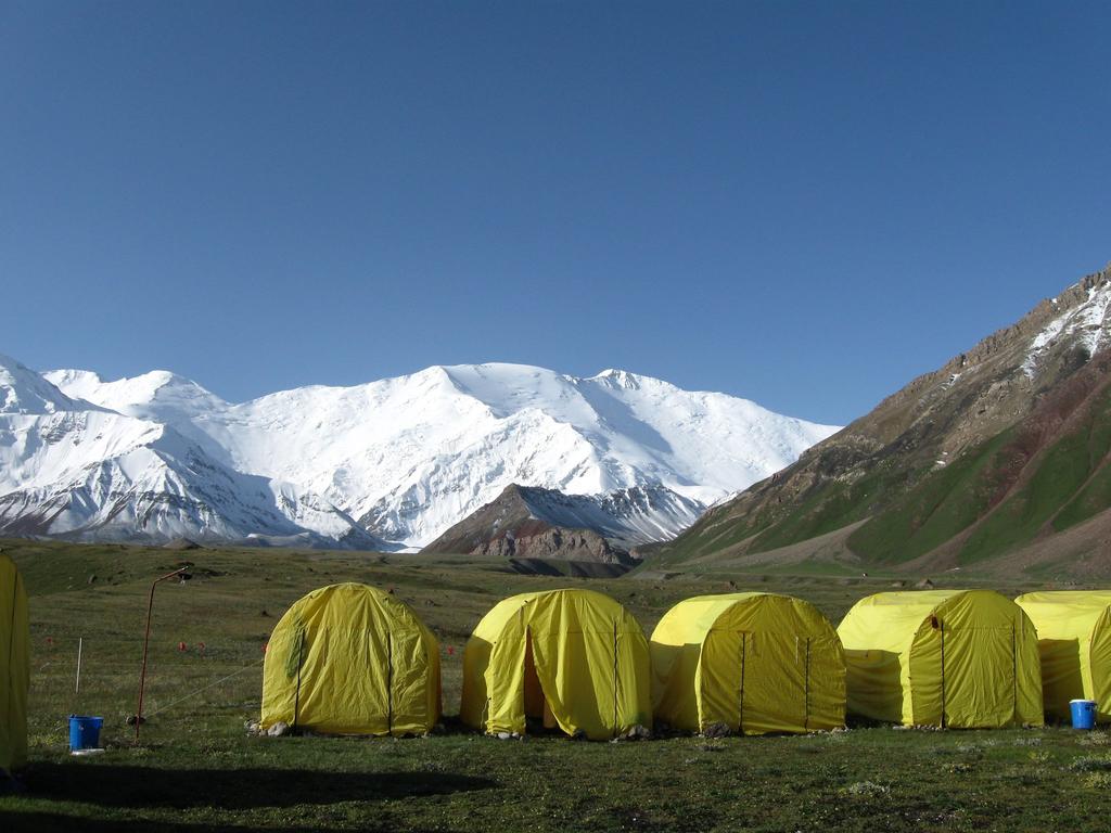 Pamir Expeditions BC med Pik Lenin i bakgrunden