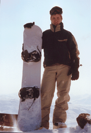 Paul glänser i solen efter en liten topptur. Nu ska man bara glida ner.