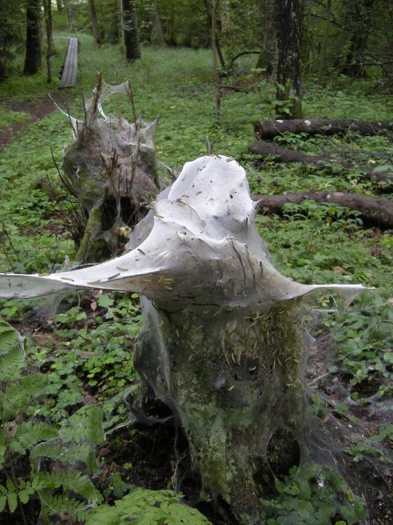 Jag har förstått att det är någon sorts Spinnmal. Man brukar kalla dessa träd "spökträd", så alienfilmerna är inte så långt borta.