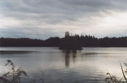 Det här är Stora Agnsjön i skymningen