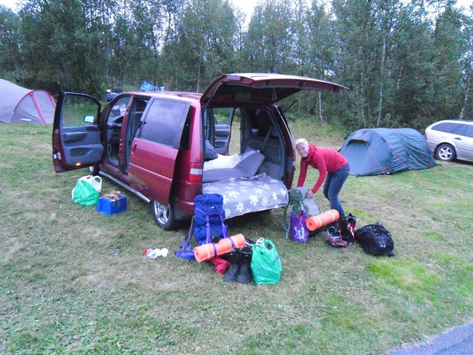 Camp Ripan i Kiruna. Sov i bilen innan avfärd mot Nikkaluokta.