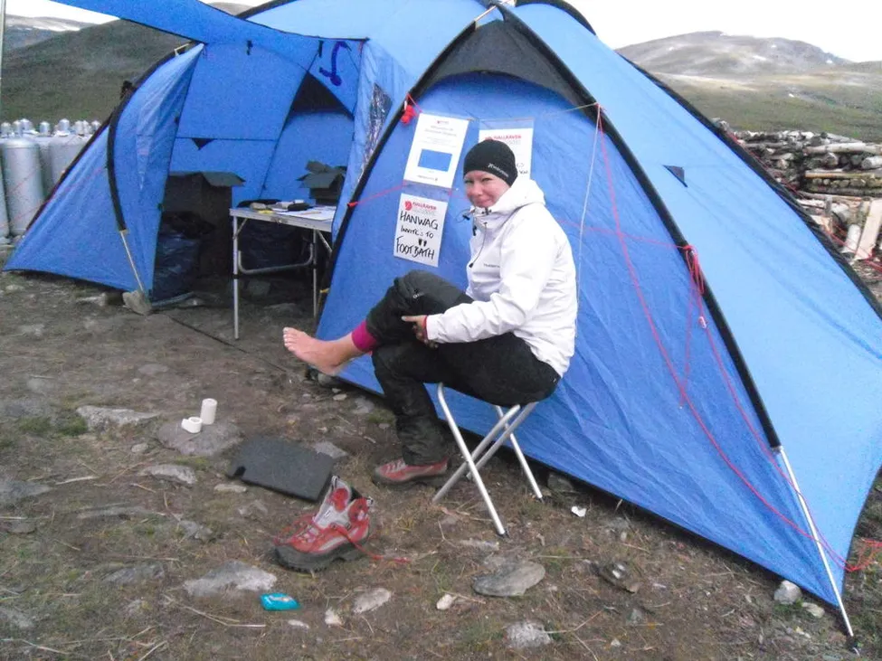 Tältet bakom mig är ett Fjällräventält men mer än så vet jag tyvärr inte. Det tillhörde check-pointpersonalen :-)