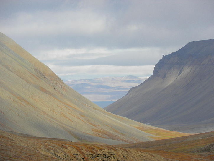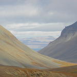 Längst upp i Björndalen, de lilla vatten som syns är Isfjorden. Snöade en kort stund här uppe.
