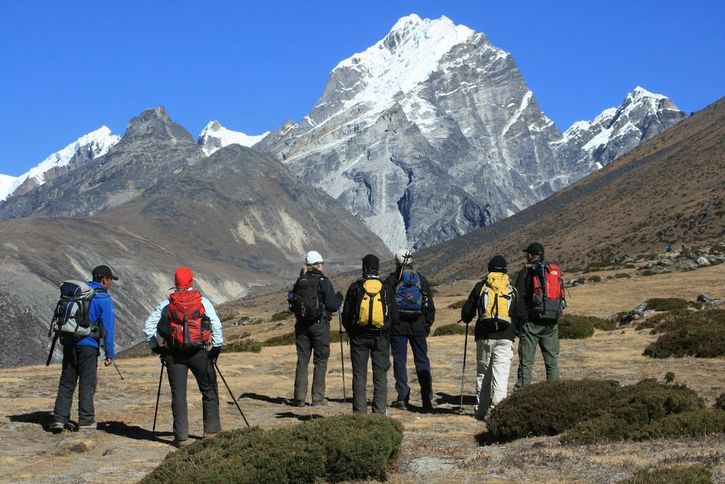 Strax före Dougla i morgonsolen, på väg till Everest basläger